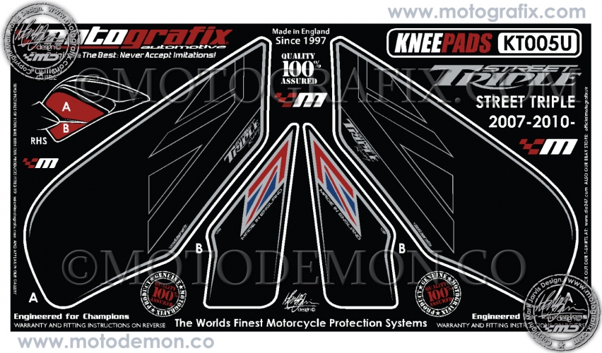 | Triumph Style Speed Street Triple Motografix Tankpad, Approx. Size H=21cm/W=15cm |